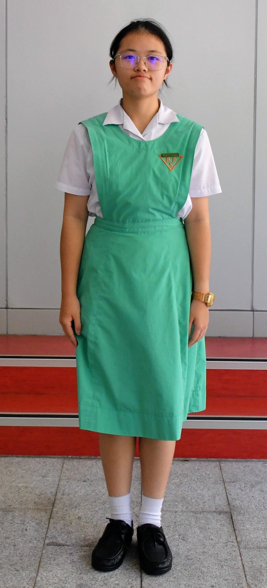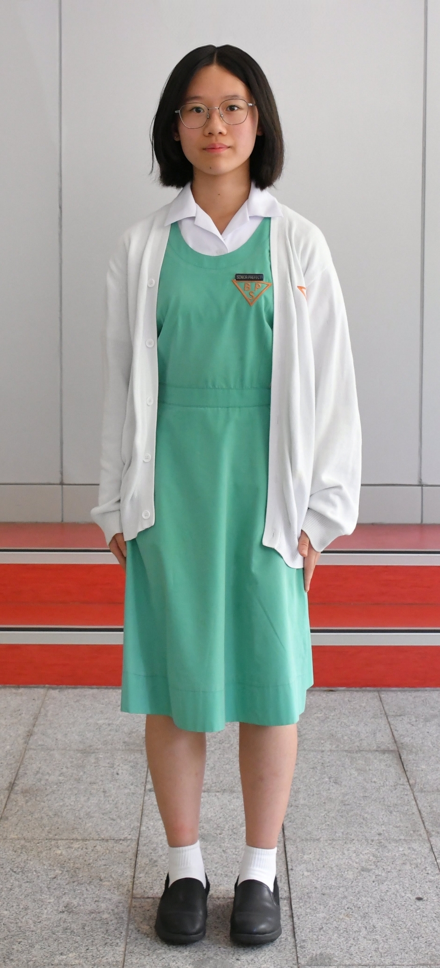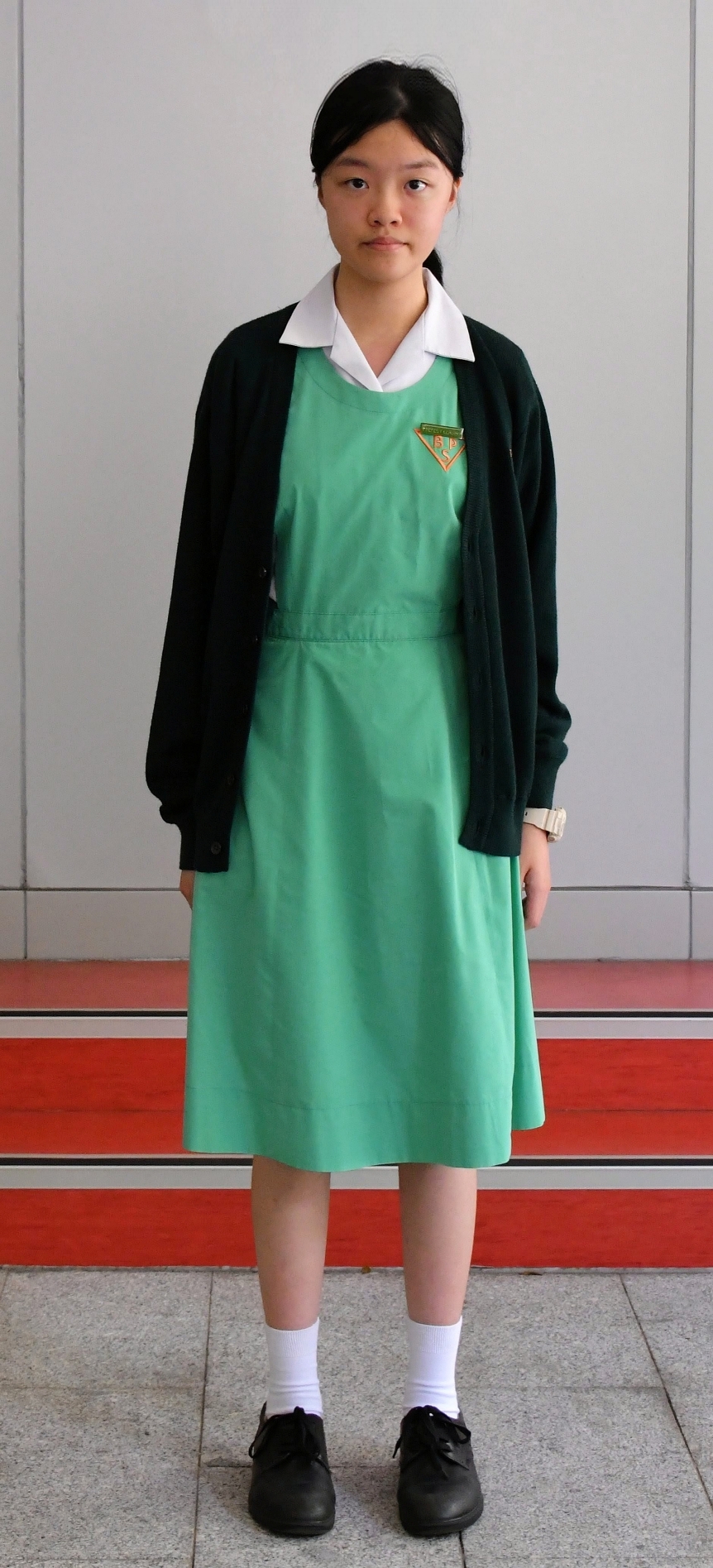 **氣溫低於12攝氏度或天文台發出寒冷天氣警報時,可穿著炭灰色、黑色長褲或學校運動長褲,及合身的純綠色、啡色、海軍藍色或黑色的中國棉衲或羽絨。 |